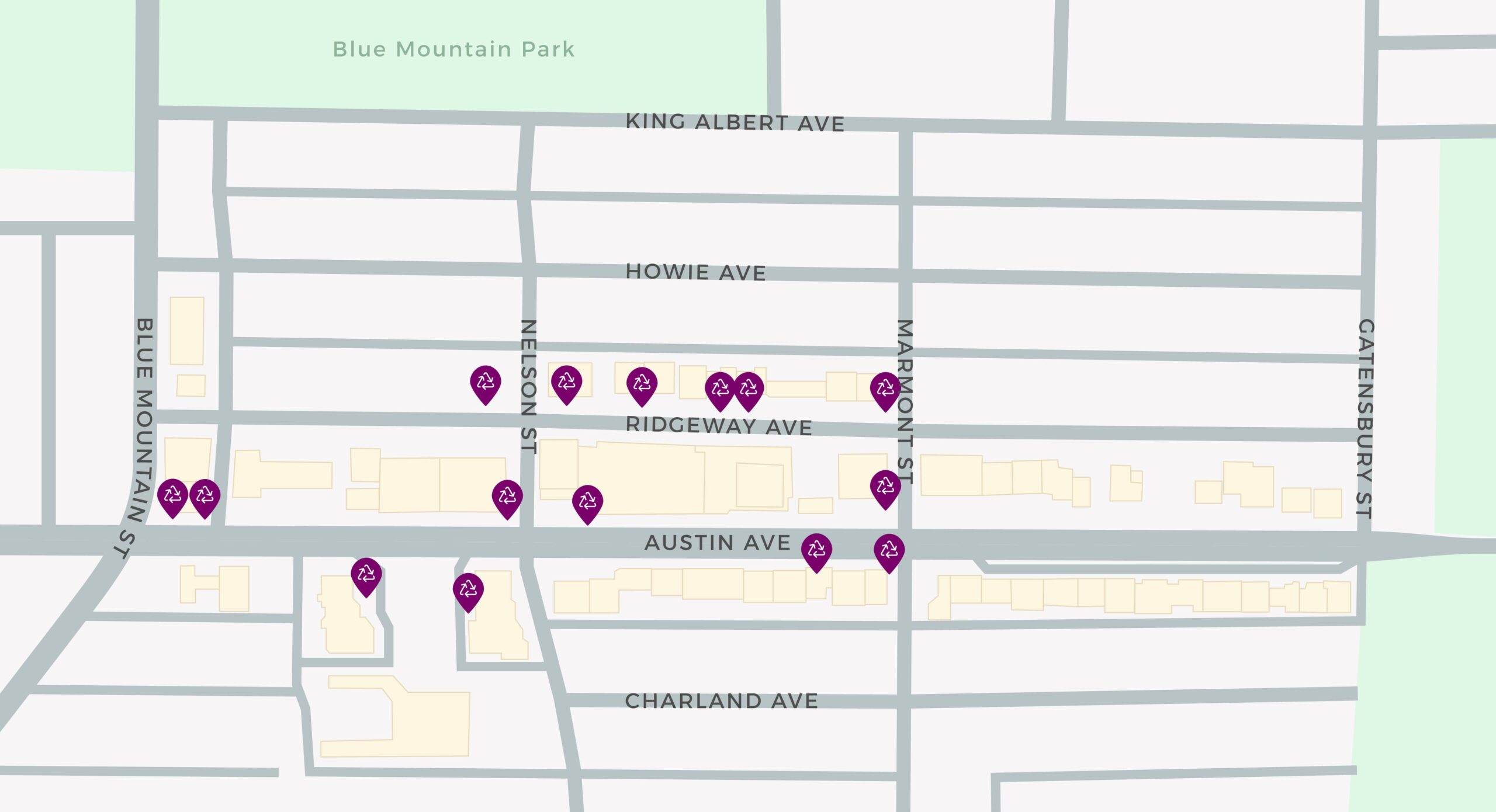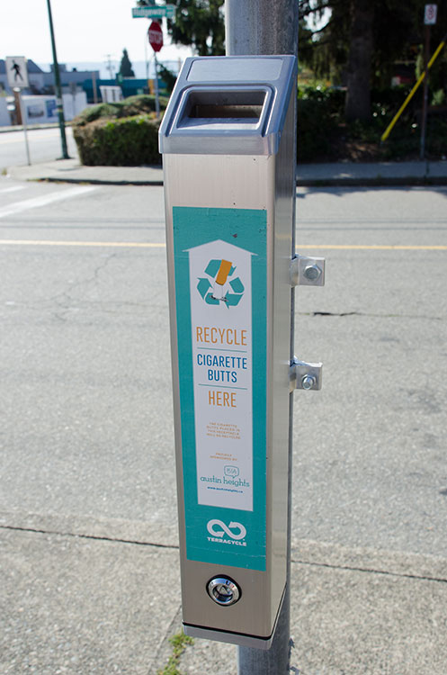 As part of the initiative, collectors earn TerraCycle points for each shipment of cigarette waste, which can be redeemed as charitable donations. The Austin Heights BIA has partnered with Community Ventures Society—an organization that supports people with developmental disabilities and their families—to empty receptacles and send collected waste to TerraCycle. In return, the society receives funds to support its programming.